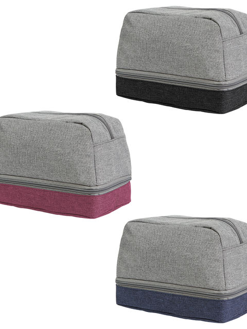Bolsa multiusos fabricada en poliéster, con 2 compartimientos, el principal y otro en la parte inferior, ambos con cierre con un detalle a color en la parte inferior, lo que le da un toque de originalidad.