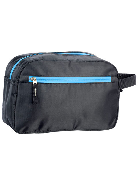 Bolsa multiusos con agarradera fabricada en poliéster con cierre de color y bolsas en interior tipo red, compartimento al frente con cierre de color, se puede utilizar para cosméticos o cualquier producto de aseo personal. Gracias a su tamaño es ideal para llevarla contigo a cualquier lugar.
