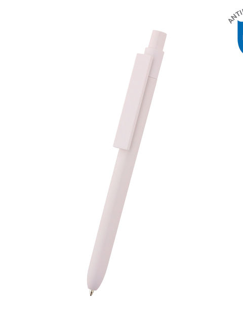 Bolígrafo retráctil fabricado en ABS con material Antibacterial (iones de plata). Tinta de escritura negra. El material Antibacterial con certificación ISO 22196 inhibe hasta en un 99.9% el crecimiento y multiplicación de bacterias. El aditivo tiene como base los iones de plata, tecnología que ha sido reconocida y utilizada durante siglos y que no tiene efectos dañinos.