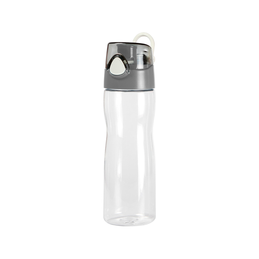 Cilindro transparente de Tritan con arnés, tapa de seguridad fabricada en plástico ABS y silicon, capacidad de 650 ml (21 oz).