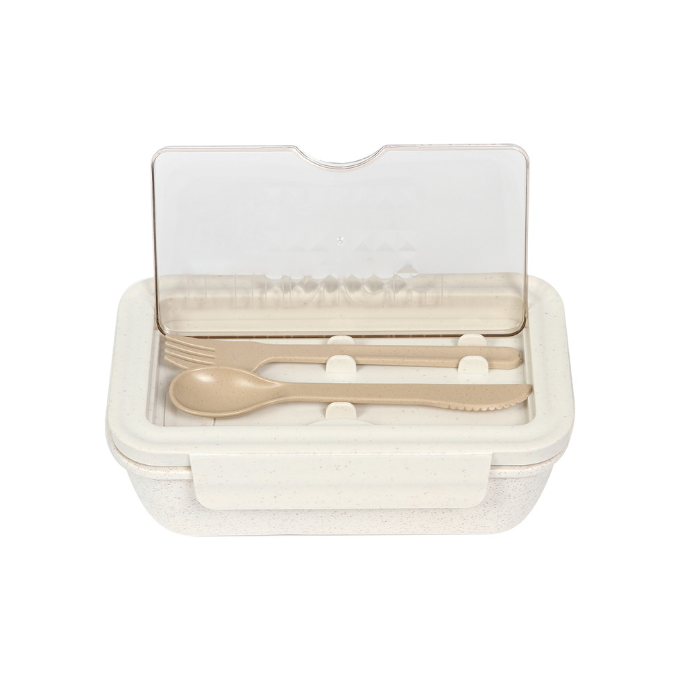 Contenedor para alimentos fabricado en 25% fibra de trigo y 75% polipropileno; con 2 compartimentos, tapa transparente y cubiertos ( tenedor, cuchara/cuchillo) fabricados en el mismo material. Capacidad de 1,100 ml. Excelente elección para aquellos que buscan una alternativa sostenible y práctica para llevar sus comidas.