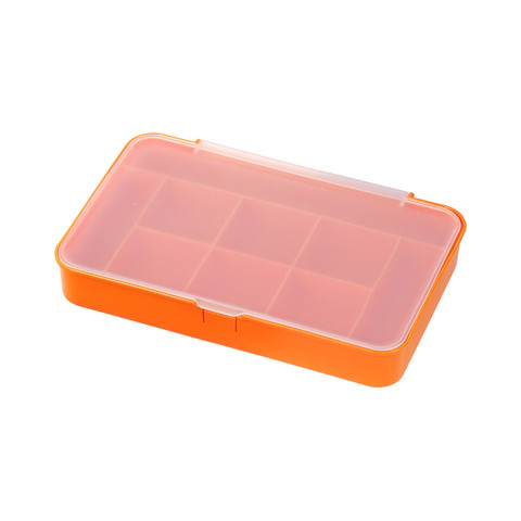 Organizador con 9 compartimentos fabricado en plástico PP (polipropileno), con tapa translucida con broche de seguridad. Ideal para guardar accesorios pequeños.