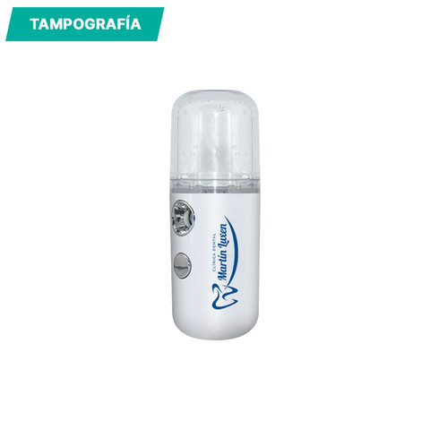 Pulverizador / Humidificador portátil recargable con capacidad de 30 ml, incluye cable de carga USB, caja individual y tapa anti derrame de boca ancha para su fácil llenado.