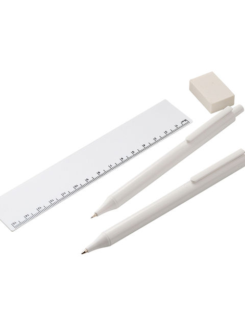 Set escolar fabricado en ABS con material Antibacterial (iones de plata). Incluye regla de 15cm, lapicero, bolígrafo con tinta negra, y goma; todo en un estuche fabricado en el mismo material Antibacterial con certificación ISO 22196 que inhibe hasta en un 99.9% el crecimiento y multiplicación de bacterias. El aditivo tiene como base los iones de plata, tecnología que que ha sido reconocida y utilizada durante siglos y que no tiene efectos dañinos.
