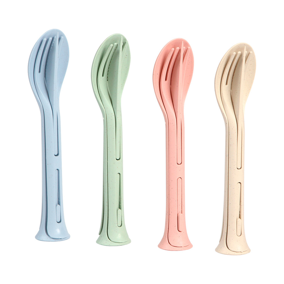 Set de cubiertos desmontables fabricados en fibra de trigo y polipropileno, contiene cuchara, tenedor y cuchillo . Incluye en caja de cartón individual. Son ideales para viajar y ser responsables con el medio ambiente.