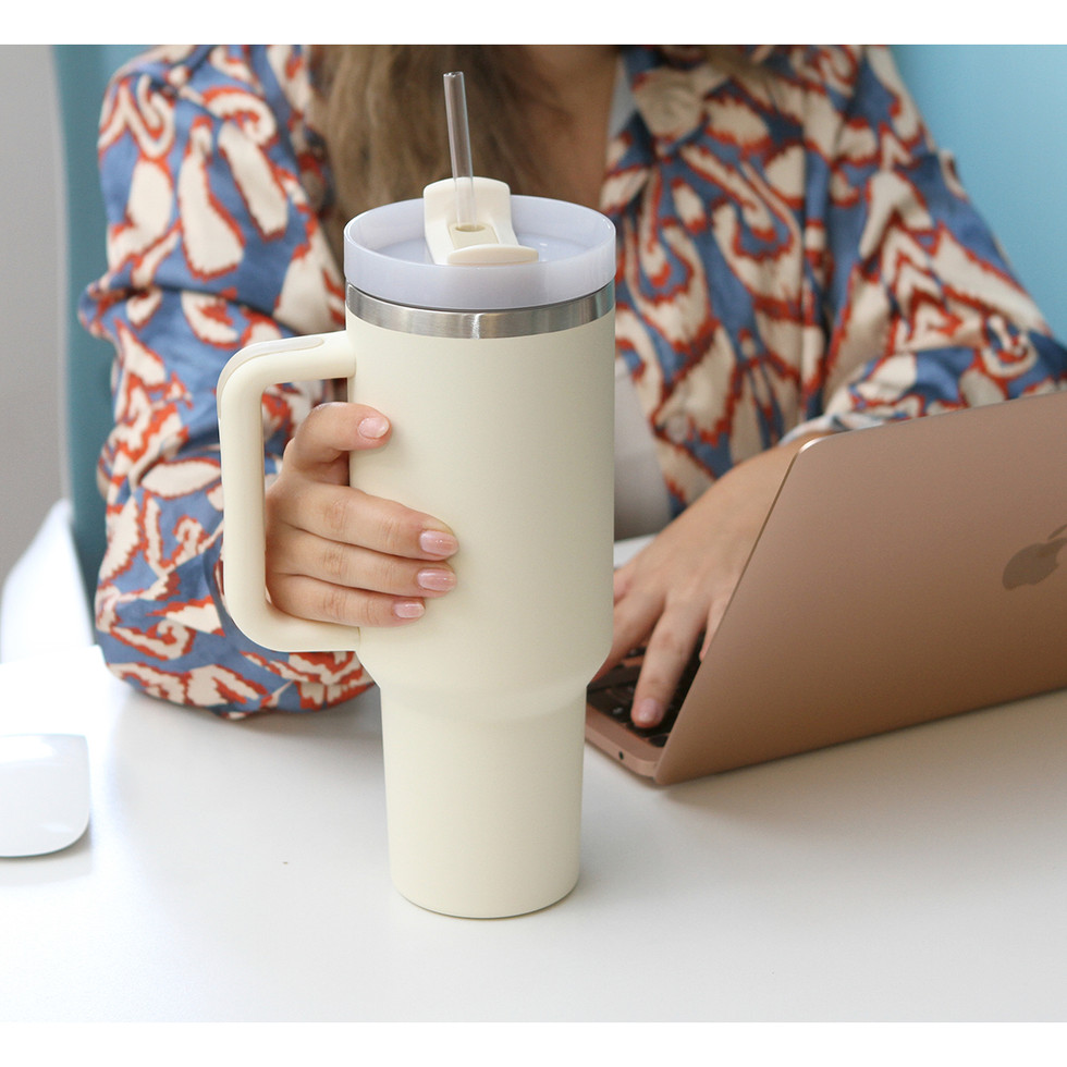 Termo Jumbo fabricado en acero inoxidable de doble pared con asa y tapa deslizable con opción para usar con o sin popote. La cubierta giratoria cuenta con tres posiciones: apertura especial para popote que mantiene el popote reutilizable en su lugar, apertura de bebida para tomar directamente del termo y cubierta completa para cerrar el termo y brindar mejor resistencia a las fugas. Está fabricado en materiales de grado alimenticio y el acero inoxidable permite mantener tus bebidas frías o calientes por un largo tiempo. No usar en microondas. Capacidad de 1,200 ml (40 oz). Incluye caja individual.