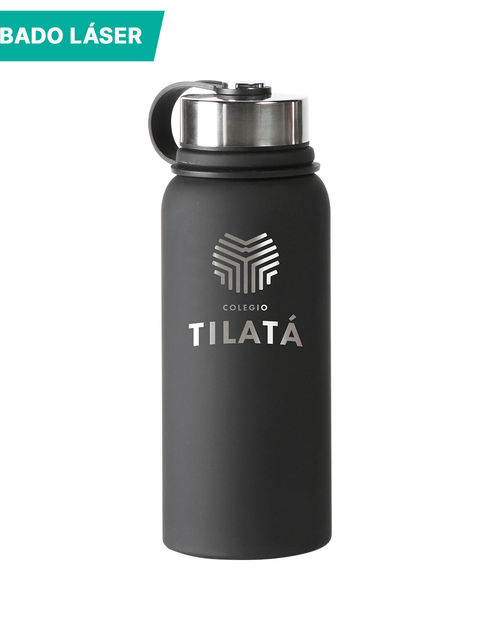 Termo de acero inoxidable doble pared con acabado mate, incluye rejilla metálica para té, fabricado en materiales de grado alimenticio, mantiene bebidas frías o calientes por un largo tiempo, no usar en microondas. Capacidad de 800 ml (27 oz). Incluye caja de cartón individual.