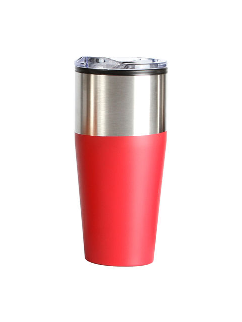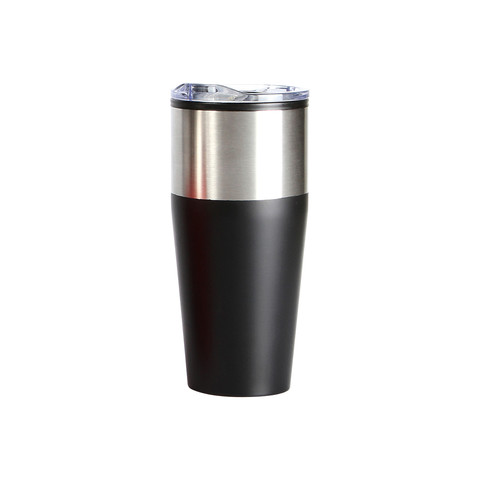 Termo de acero inoxidable bi-tono con tapa deslizable de plástico transparente, fabricado en materiales de grado alimenticio, mantiene bebidas frías o calientes por un largo tiempo, no usar en microondas. Capacidad de 530 ml (18 oz). Incluye caja de cartón individual.