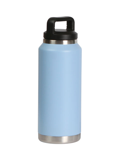 Termo de acero inoxidable doble pared con tapa de rosca, detalles plata en base y boquilla. Fabricado en materiales de grado alimenticio, mantiene bebidas frías o calientes por un largo tiempo. No usar en microondas. Capacidad de 1000 ml. Incluye caja de cartón individual.