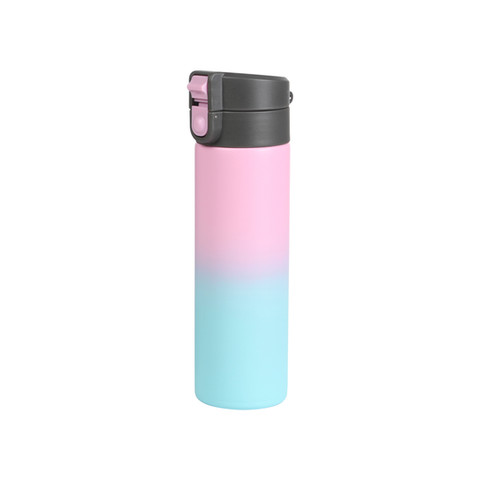 Termo bi-tono doble pared de acero inoxidable, con tapa plástica y botón de seguridad. Fabricado en materiales de grado alimenticio, mantiene bebidas calientes por un largo tiempo, no usar en microondas. Capacidad de 500 ml. Incluye caja de cartón individual.