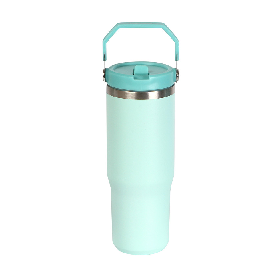 Termo de acero inoxidable de doble pared con tapa plástica, popote y asa. Nuestra botella está fabricada en materiales de grado alimenticio y el acero inoxidable permite mantener tus bebidas frías o calientes por un largo tiempo. El popote puede contraerse lo que ayuda a mantener seguro el líquido de la botella. El asa ergonómica es ideal para llevarlo a todas partes. No usar en microondas. Capacidad de 900 ml. Incluye caja de cartón individual.